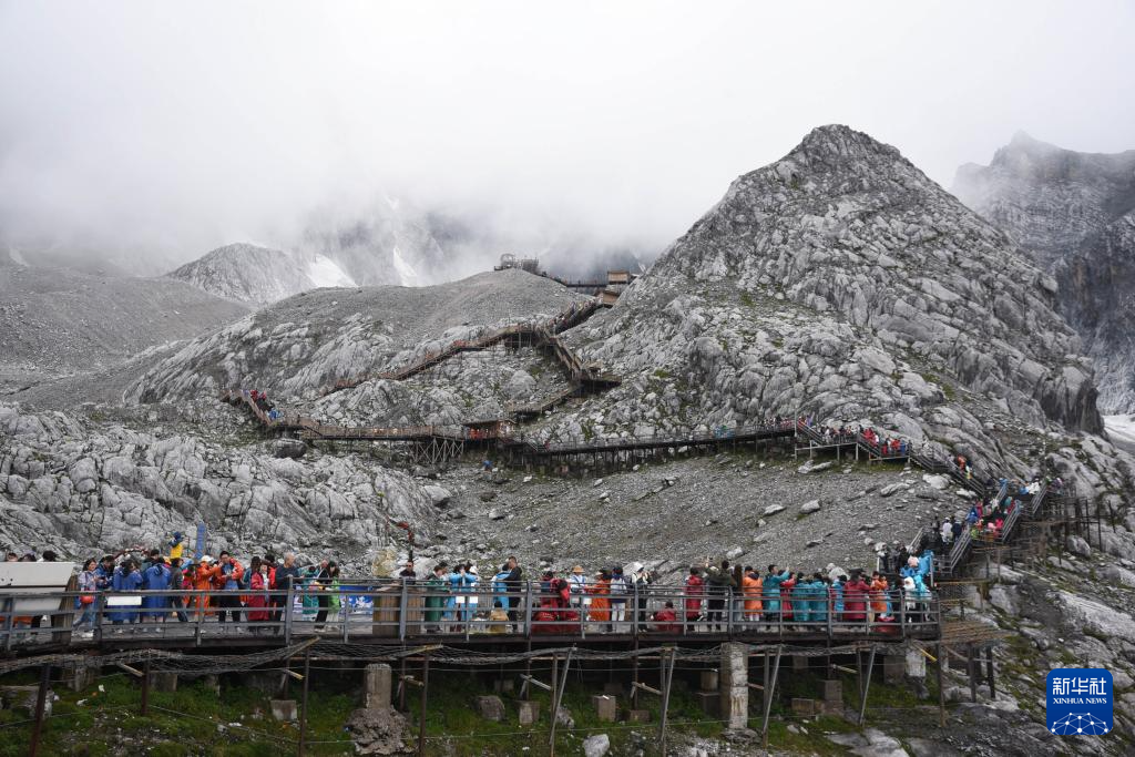 7月28日,游人在云南丽江玉龙雪山游玩。