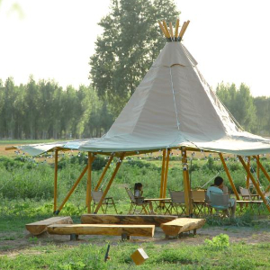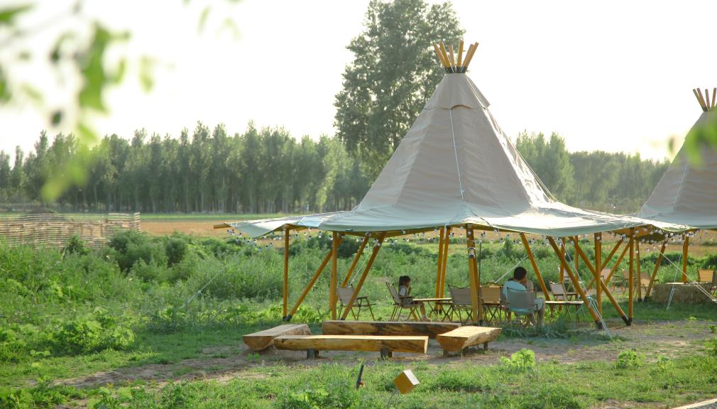 在商河县许商街道单家园村,游客在帐篷下休息。新华社记者 王志 摄