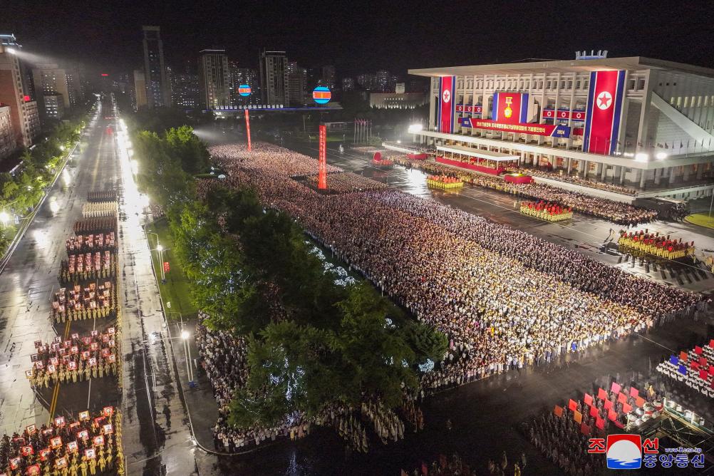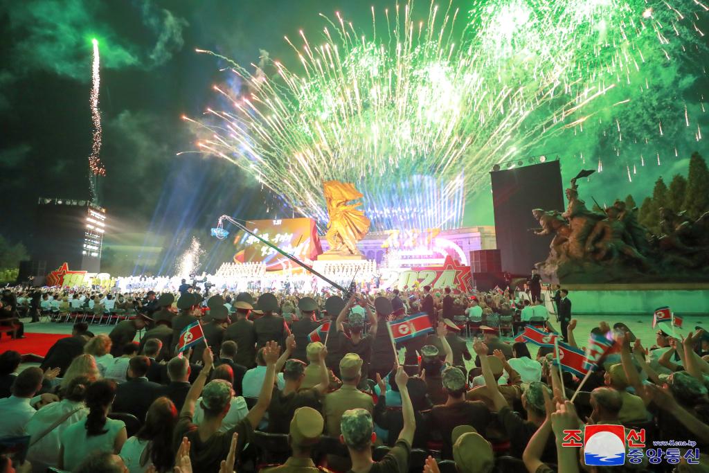 这张朝中社发布的照片显示,7月27日,纪念祖国解放战争胜利71周年大型演出在朝鲜首都平壤举行。新华社/朝中社
