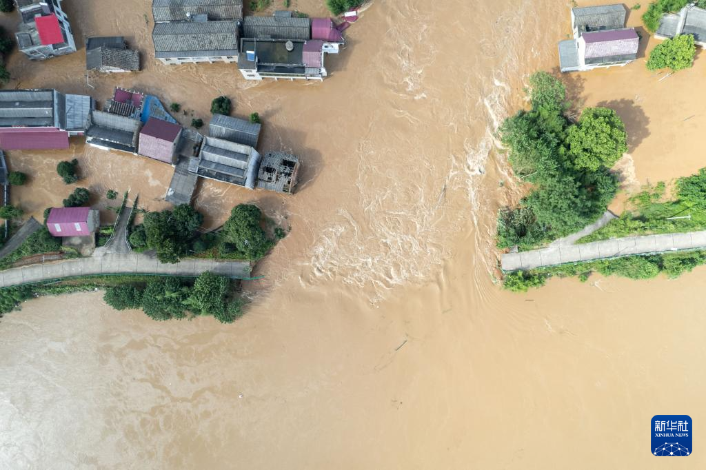 这是7月29日拍摄的涓水湘潭县河口镇华中村堤段决口险情现场(无人机照片)。新华社记者 陈思汗 摄