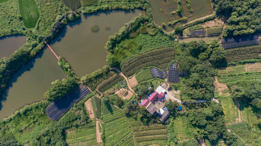这是7月24日在安徽省铜陵市义安区天门镇新华村拍摄的朱晴雨家周边环境(无人机照片)。新华社记者 傅天 摄