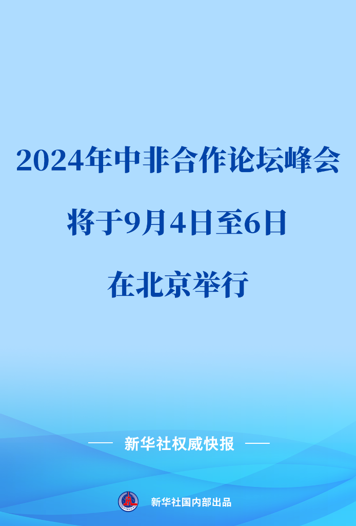 外交部发言人华春莹7月30日宣布:2024年中非合作论坛峰会将于9月4日至6日在北京举行。本次峰会主题为“携手推进现代化,共筑高水平中非命运共同体”。中非合作论坛非方成员领导人将应邀与会,有关非洲地区组织和国际组织代表将出席峰会有关活动。
