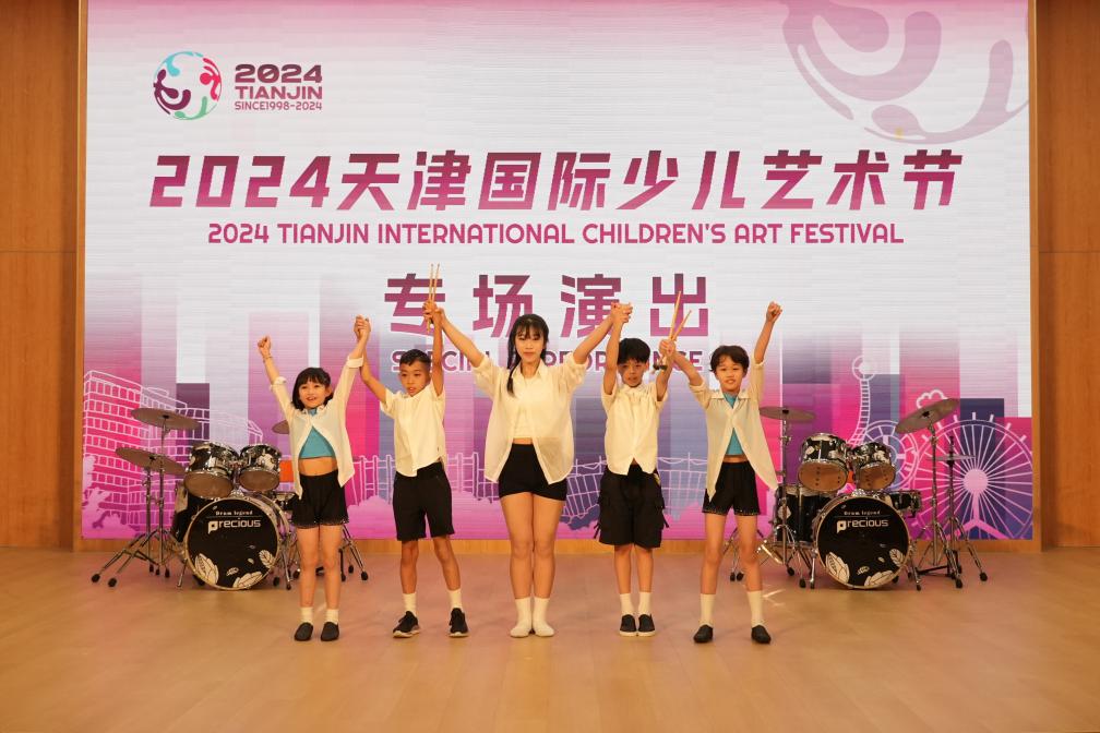7月23日,香港梦想世纪少儿艺术团在天津演出后合影。新华社发