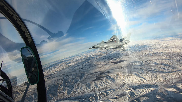 北部战区空军某旅组织昼间飞行训练(2024年1月2日摄,视频截图)。新华社发(盖世龙 摄)