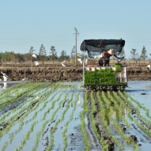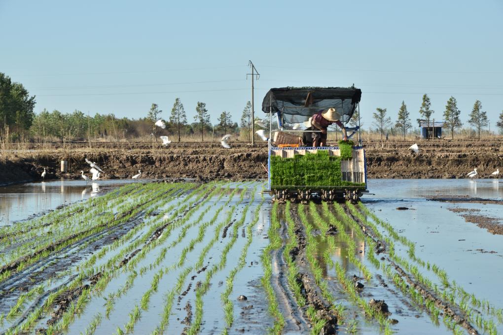 目前,水稻秧苗可用于4000多亩农田,30台插秧机、20台旋耕机已驶入团洲垸内,并处于满负荷作业状态。