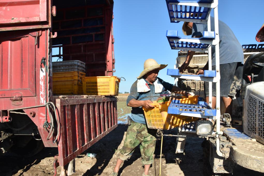 农机手在搬运水稻秧苗。新华社记者白田田 摄