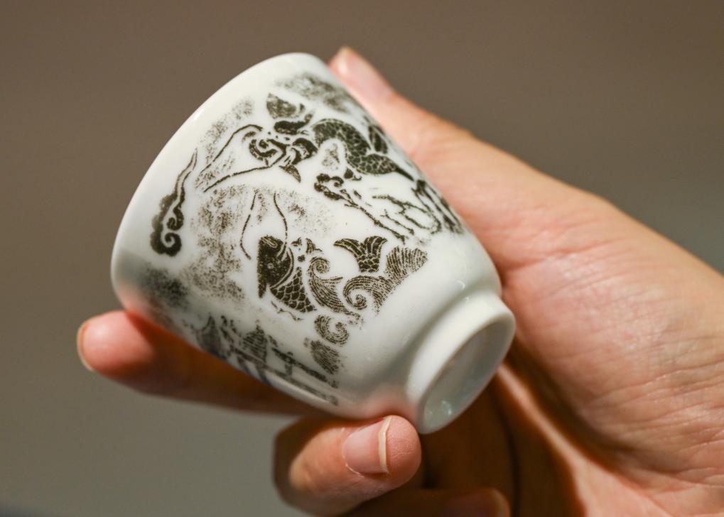 在浙江台州仙居县白塔镇上叶村仙居岩画艺术中心内,工作人员展示根据当地岩画开发的文创礼品(7月28日摄)。新华社记者 李贺 摄