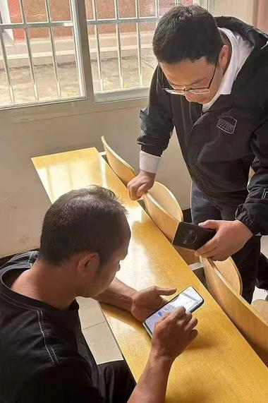 工作人员指导个体工商户在手机“融信服”平台上申请贷款。(受访对象供图)