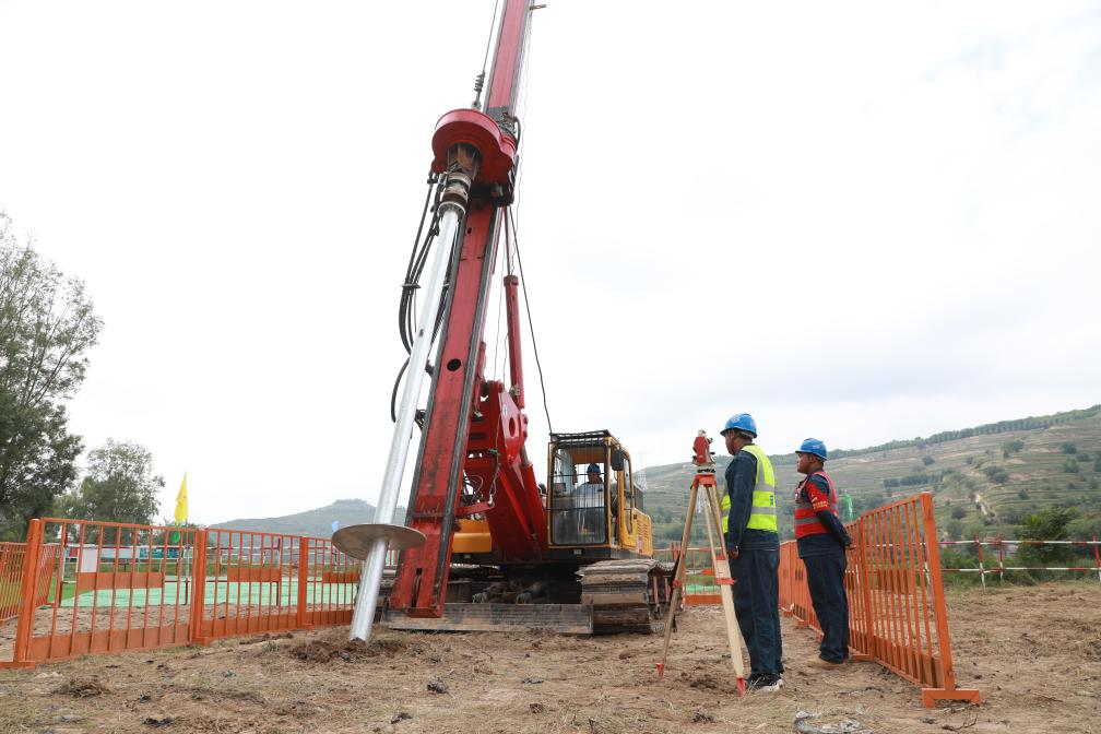 螺旋锚钻机正将锚杆钻入地下。新华社记者张智敏 摄