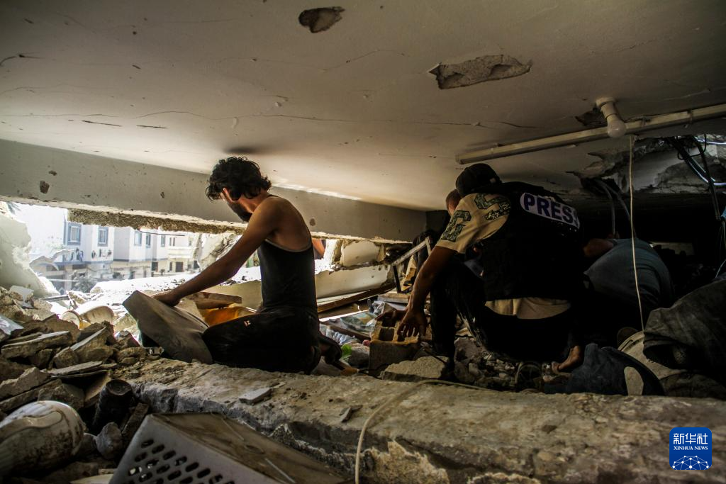 8月4日,人们在加沙城遭到轰炸的学校内搜寻死伤者。新华社发(马哈茂德·扎基 摄)