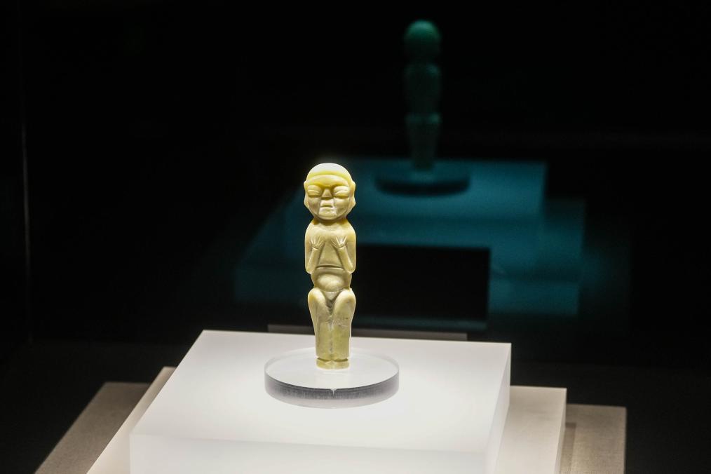 这是2024年8月3日在牛河梁遗址博物馆拍摄的展品玉人。