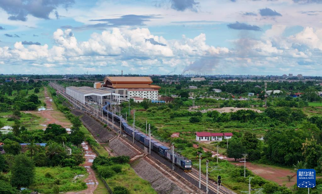 8月5日,由老挝籍火车司机独立驾驶的满载货物的列车驶出中老铁路万象站。新华社发(凯乔 摄)