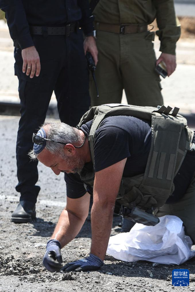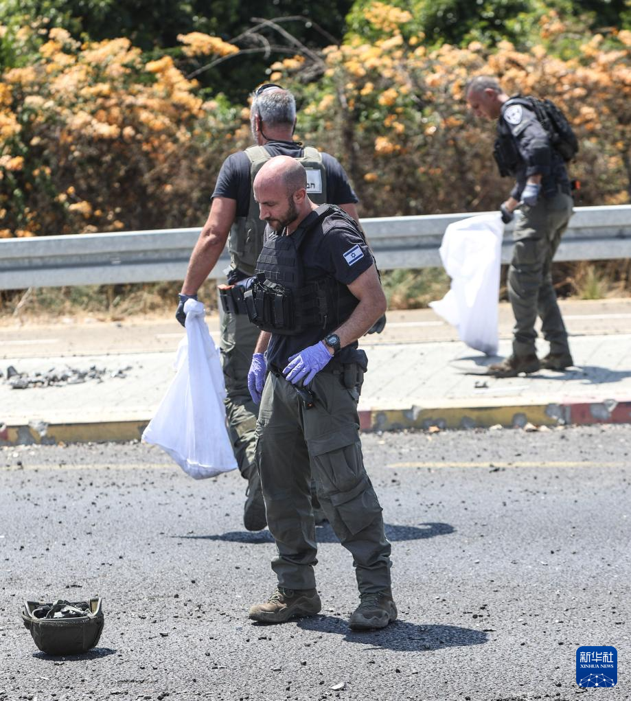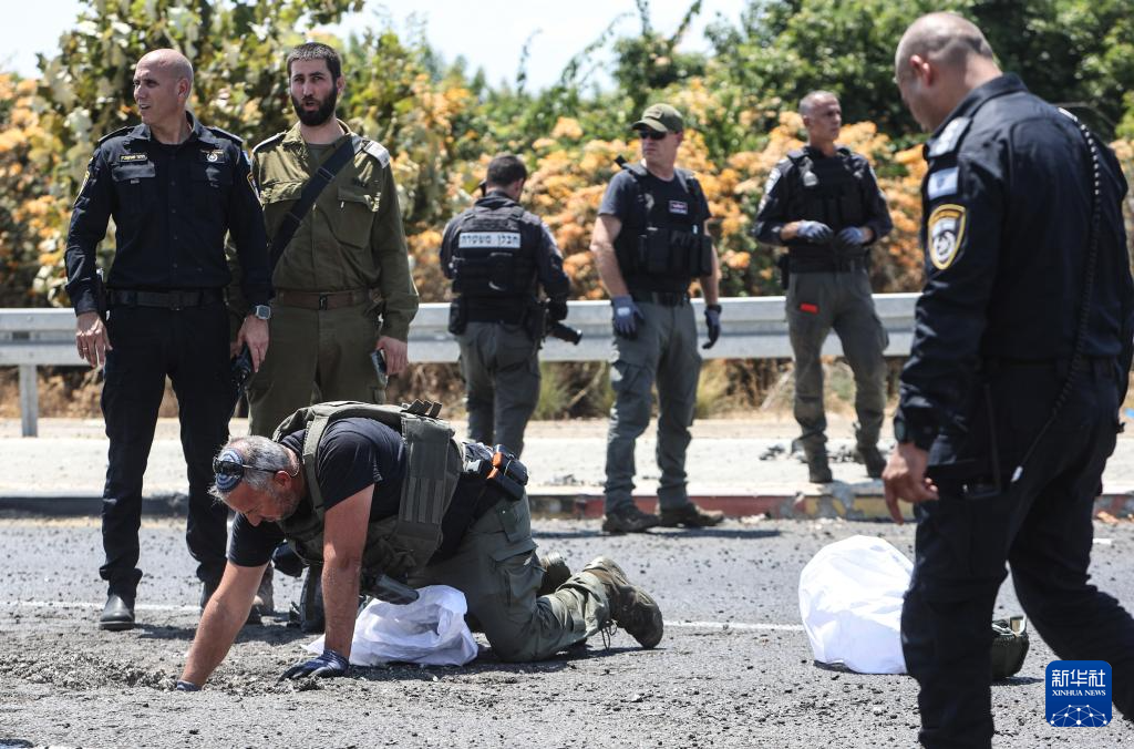 8月6日,在以色列纳哈里亚,警方在无人机袭击现场开展工作。新华社/基尼图片社