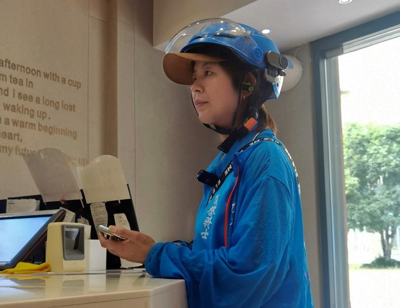 黄晓琴说:“一天得喝3升多水,杭州的大街小巷随处可见骑士驿站,太热了,就躲进去凉快一下。”