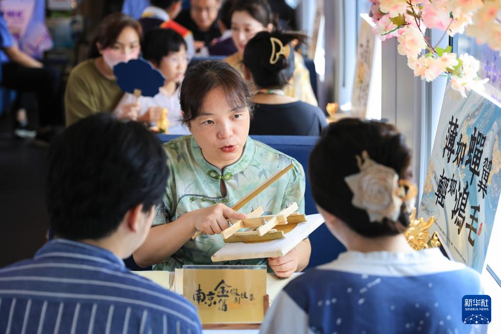 当日,中国铁路上海局集团有限公司南京客运段在G7393次和G132次高铁列车上开展“七夕宁相汇 文博叙匠心”主题活动。活动中,来自南京多家文博场馆的工作人员进行传统手工艺展示,并邀请旅客互动体验,让旅客在旅途中感受传统文化的魅力,迎接七夕节的到来。