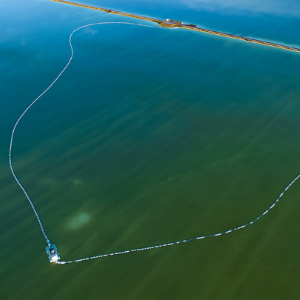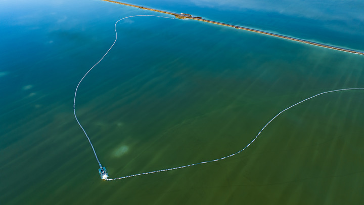 察尔汗盐湖拍摄的采盐船(2023年6月8日摄)。 潘彬彬 摄