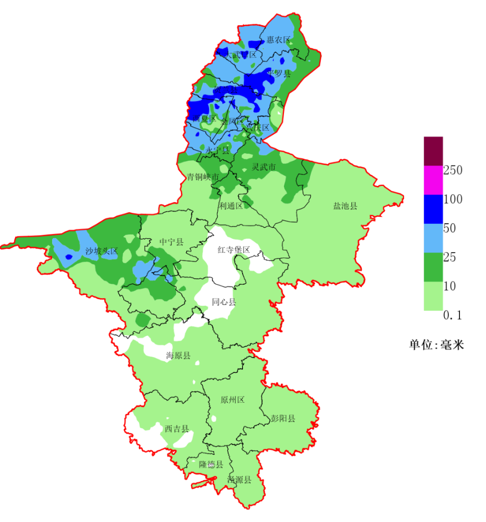 8月8日8时至17时累计降雨量分布图。宁夏气象局供图