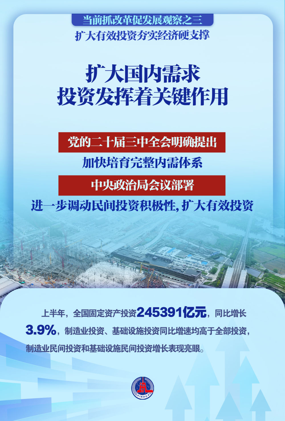 根据党的二十届三中全会作出的相关部署,聚焦关键领域扩大有效投资有了更明确发力方向——