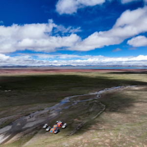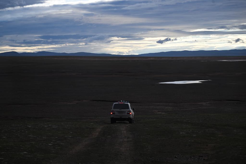 “哐当”一声,随着车身剧烈地摆动,车队逐渐驶离109国道。野牦牛悠闲觅食,雄鹰冲破长空,没有树木遮挡,不存在任何人类活动的痕迹,广袤无垠的荒野画卷在我们眼前逐渐展开。