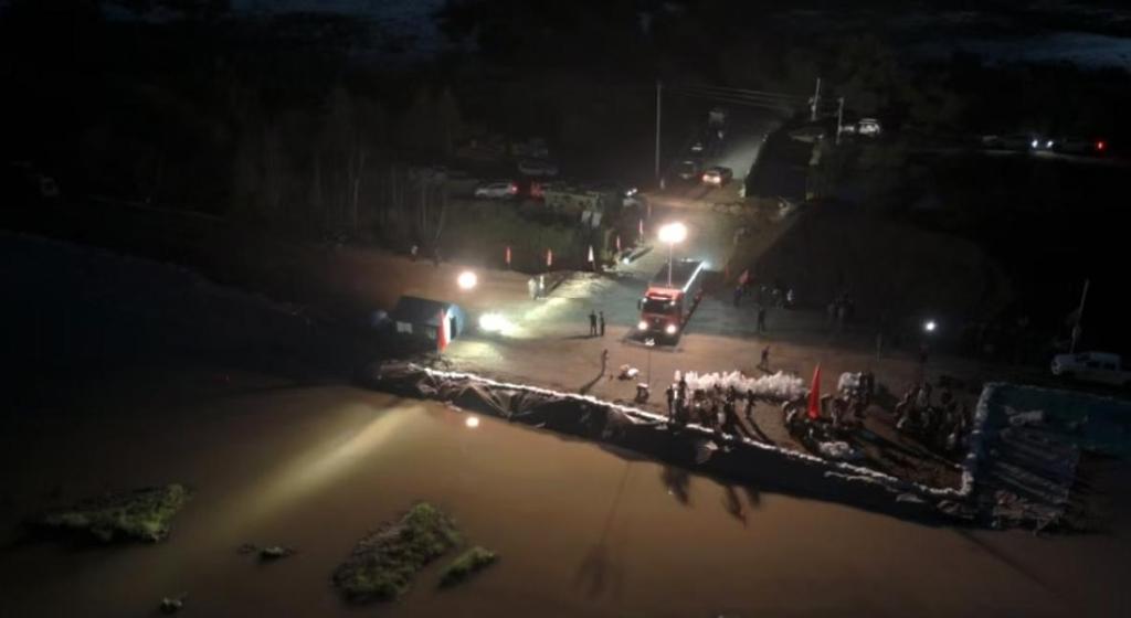 洪峰到来前,虎林市防汛一线开展堤防加高加固、隐患排查处置等工作。新华社发(受访者供图)