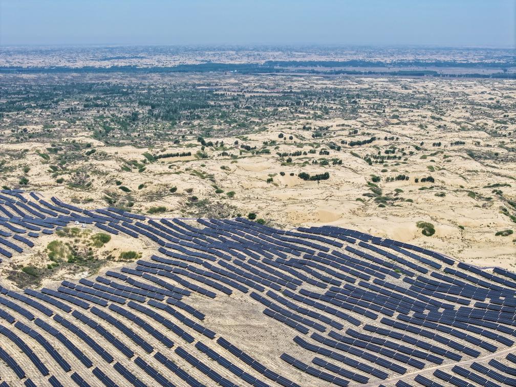 在内蒙古科尔沁、浑善达克两大沙地,光伏发电板整齐排列,昔日沙海正变身“蓝海”。“力争到2030年,内蒙古防沙治沙和风电光伏一体化项目新能源装机达到1.19亿千瓦,综合治理沙化土地1151万亩。”内蒙古自治区能源局党组成员、副局长陈铮介绍,截至5月底,内蒙古新能源总装机规模达到10158万千瓦,成为全国第一个新能源总装机突破1亿千瓦的省份,新能源发电量达到1063亿千瓦时,相当于减少标准煤消费3295.3万吨,减少二氧化碳排放8759.12万吨。