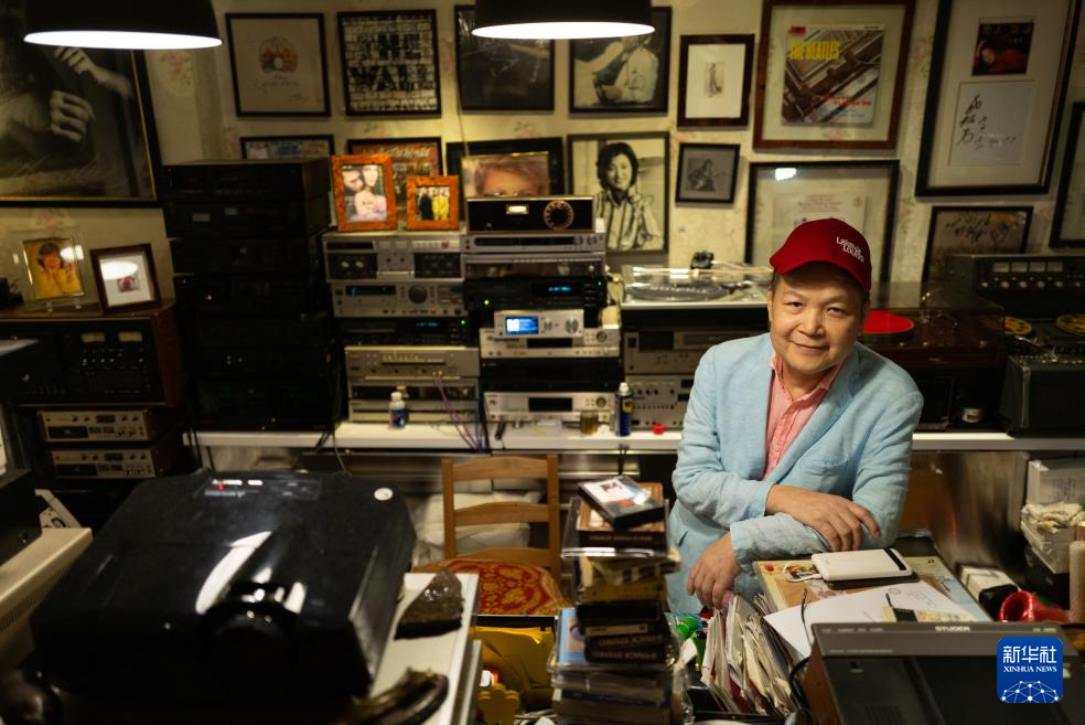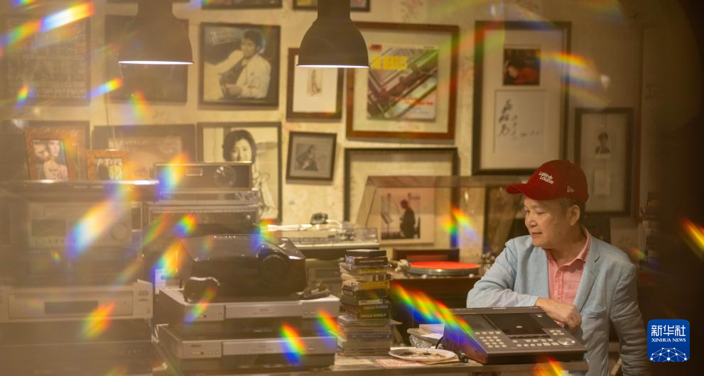 在香港铜锣湾的一栋写字楼,约50平米的房间内,有一座由约2万件唱片、磁带、留声机等物件堆叠而成的“堡垒”。这是音乐发烧友邓汉深耗时7年时间打造的音乐“桃源”。他摁下播放键,在黑胶唱片和留声机共同编织的音乐空间里,时间仿佛静止,只留下声音在空中轻轻飘荡。
