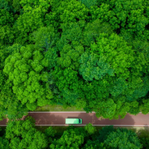 7月11日,游客乘坐电瓶车在伊春市上甘岭溪水国家森林公园内穿行(无人机照片)。新华社记者 张涛 摄