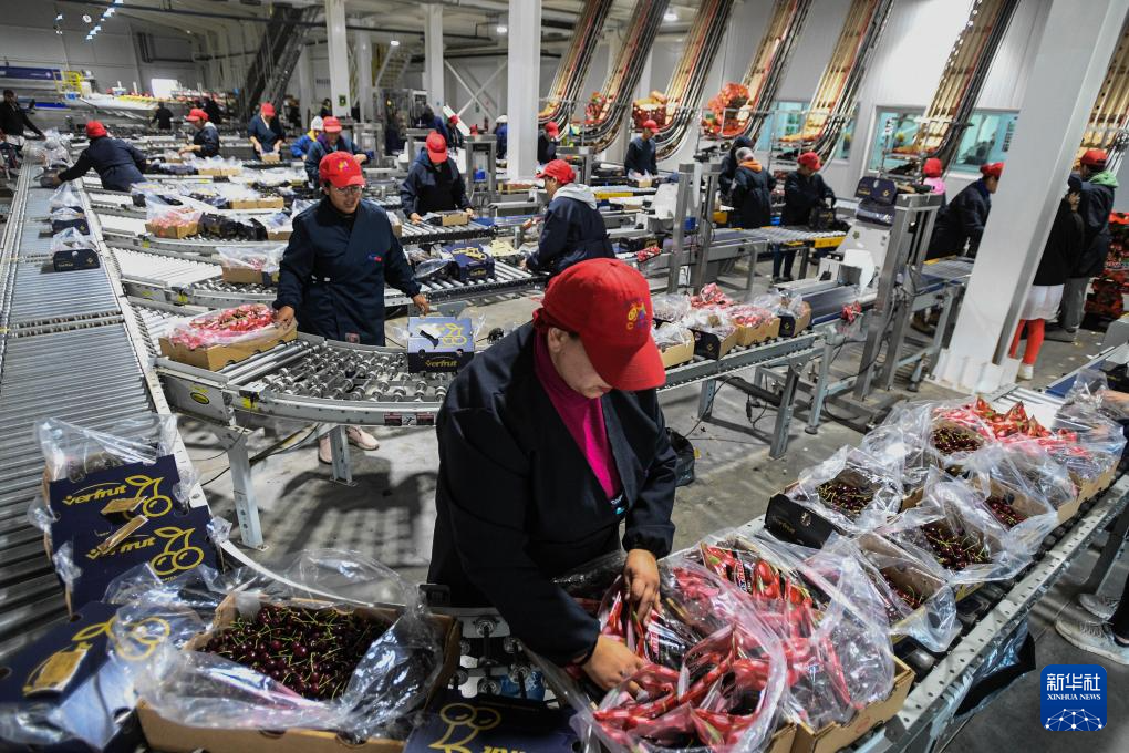 1月4日,工人在智利拉斯卡夫拉斯市的水果包装厂内分拣包装即将出口的车厘子。新华社发(豪尔赫·比列加斯摄)