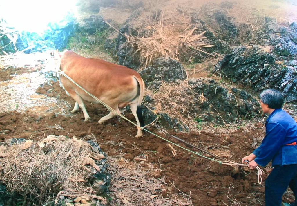 曾经的弄拉屯石漠化严重,村民们只能在石头缝里耕作,但产量非常低(资料照片)。