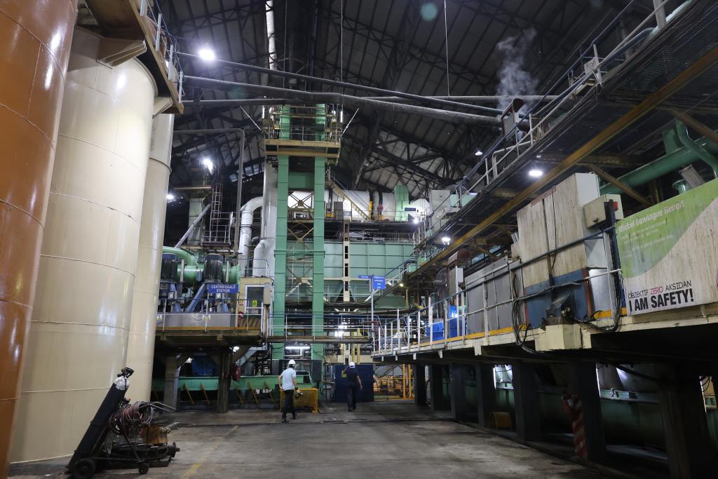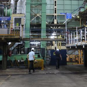 7月26日,在毛里求斯东部弗拉克区一家糖厂,工人在车间内工作。新华社记者凌馨摄