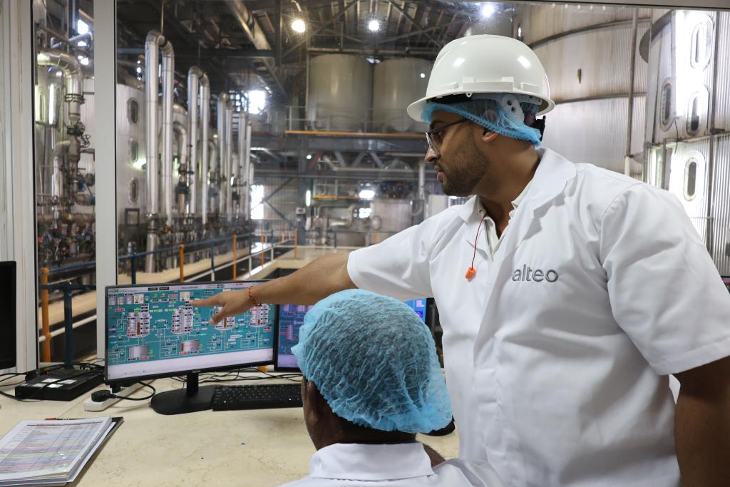 7月24日,在毛里求斯东部弗拉克区一家糖厂,工人在车间内监测蔗糖的生产。新华社记者凌馨摄