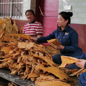 图为国家电网宁强供电公司员工在汛期后帮助烟农挑选烟叶,避免受潮导致烟叶变质。(杨莉 摄)