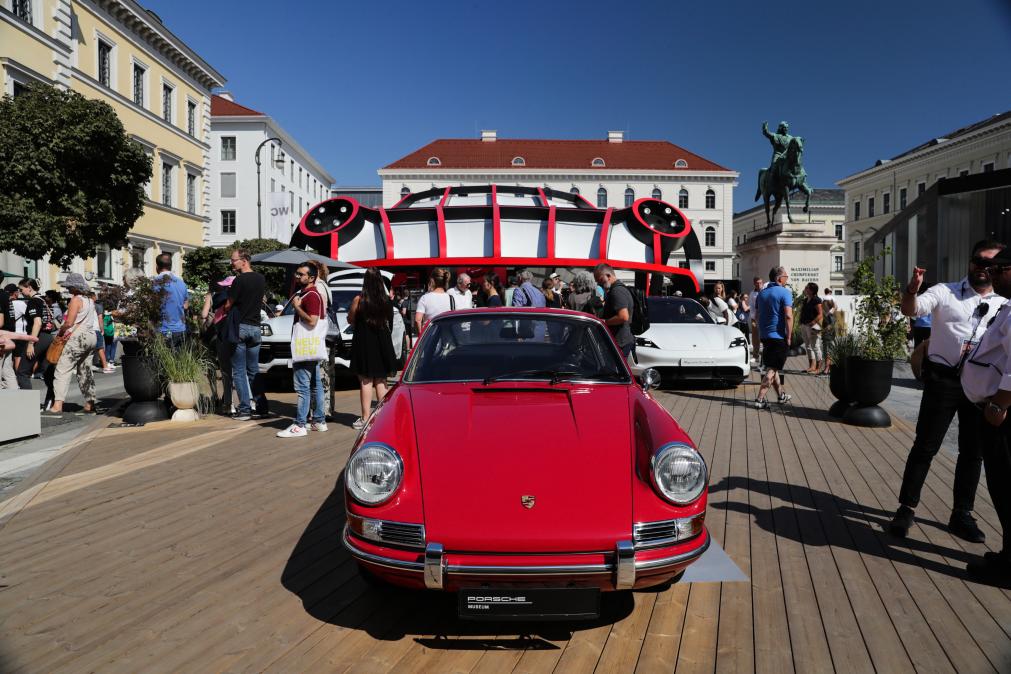 2023年9月8日,人们在德国慕尼黑国际车展城市公共展示区的保时捷展区参观。新华社记者张帆摄