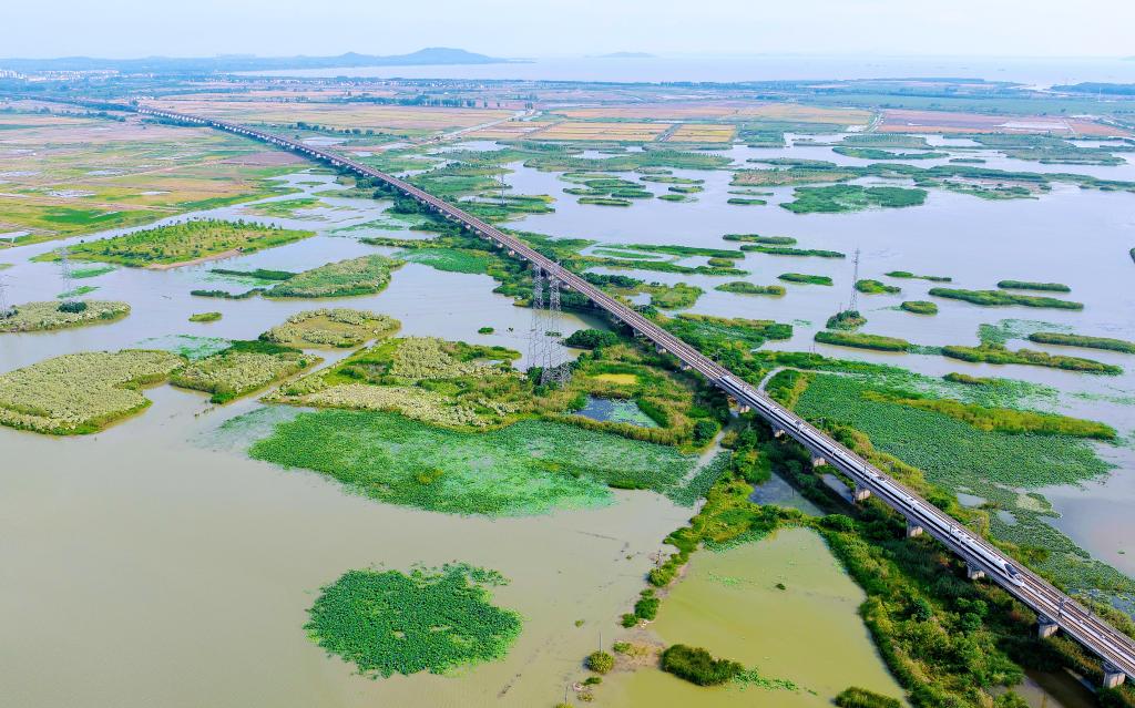 这是6月30日拍摄的巢湖湖滨国家湿地公园一景。