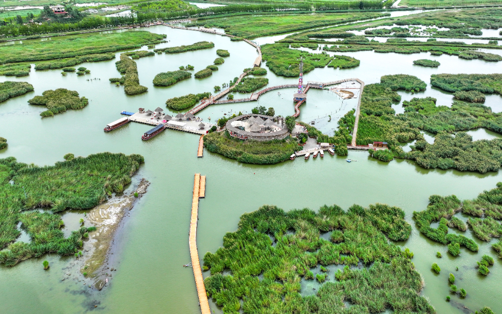 宁夏石嘴山市沙湖景区风光(2024年8月6日摄,无人机照片)。新华社记者 冯开华 摄
