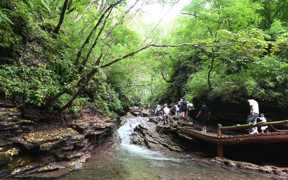 游客在六盘山国家森林公园游览(2024年8月4日摄)。新华社记者 毛竹 摄