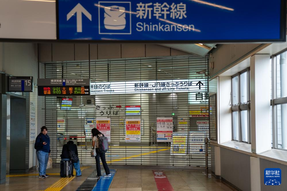 8月16日,乘客站在关闭的日本东京品川新干线站点旁。新华社记者 张笑宇 摄