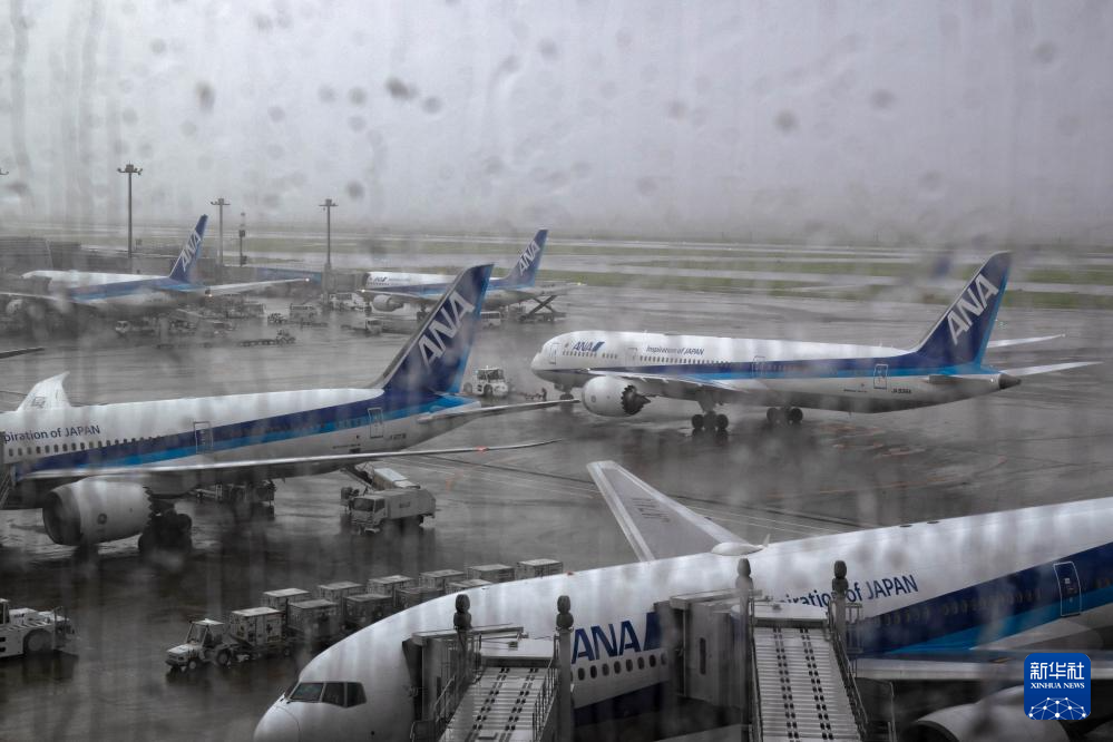 这是8月16日在日本东京羽田机场拍摄的全日空航空公司客机。新华社记者 张笑宇 摄