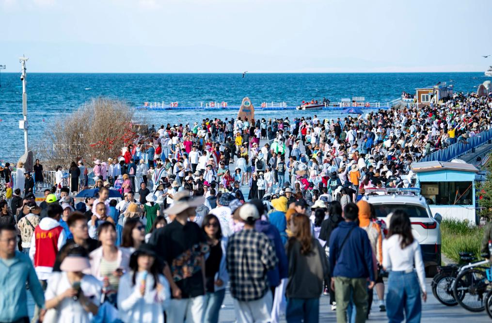“旅游专列为我们带来了更多客源。他们在这里体验游牧生活,品尝特色美食,感受大自然。这不仅增加了我们的收入,也让我们更加珍惜和爱护这片土地。”青海湖乡达玉五谷村村民兰公加说。