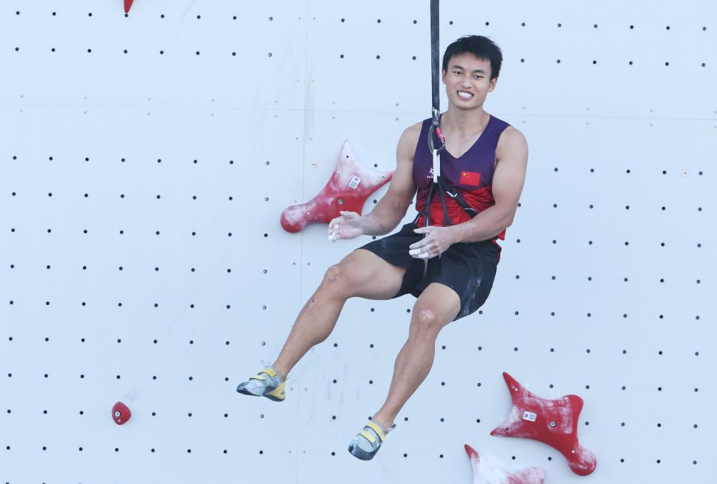 找练习速度攀岩的伍鹏“代言”爬山活动
