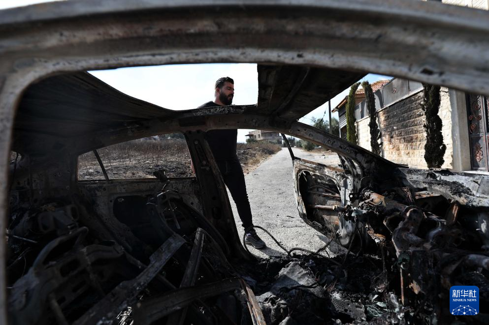 8月16日,在约旦河西岸城市盖勒吉利耶,一名巴勒斯坦人查看在以军袭击中被损毁的车辆。新华社发(艾曼·诺巴尼摄)