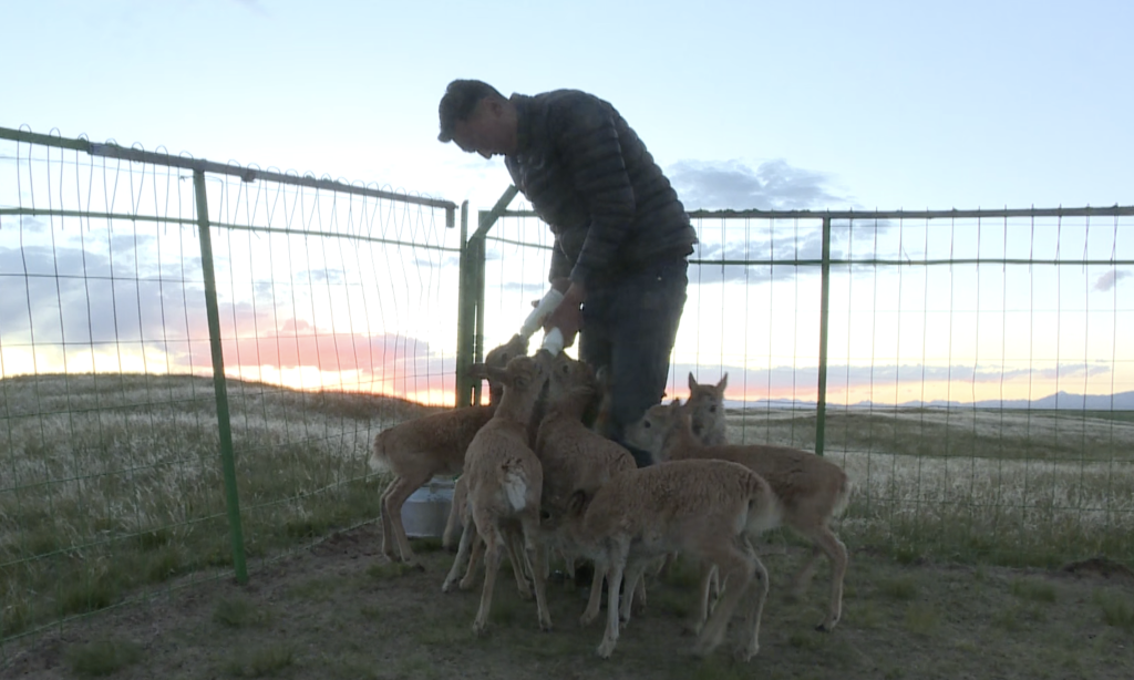 “小藏羚羊刚到保护站的时候身体比较虚弱,状态不佳。”索南达杰保护站驻站队员才仁洛松说,队员们每天需要给小藏羚羊喂三次牛奶,晚上还会在小藏羚羊房间的地上铺上褥子,保持室内温度。这种细心的照顾让保护站的队员们被大家形象地称为小藏羚羊“奶爸”。