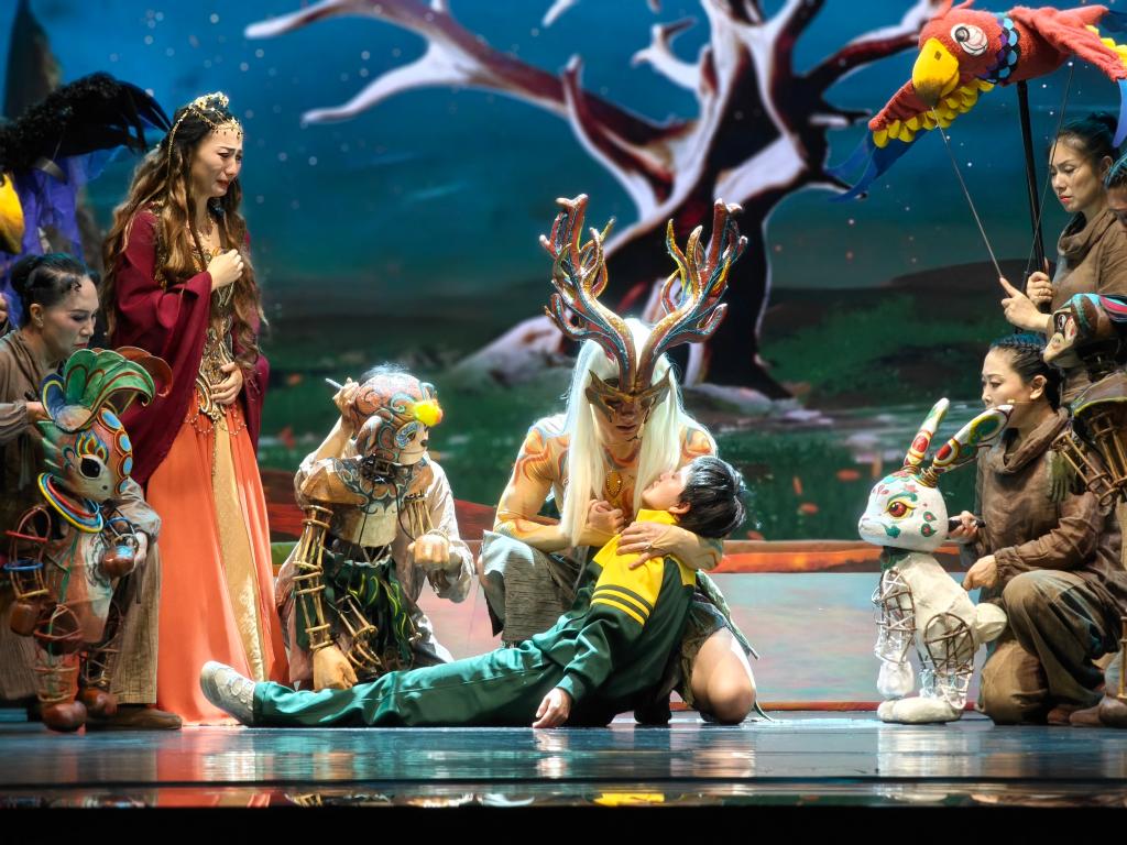 天津市儿童艺术剧团团长宋永顺介绍,《敦煌·九色鹿王》是用XR数字科技替代传统舞台实景的戏剧,也是推动中华优秀传统文化创造性转化创新性发展的艺术实践。该剧秉承让文物说话、让历史说话的创作理念,希望通过戏剧、木偶、音乐、歌舞、数字技术、AI人工智能等多元化技术和艺术手段,帮助广大少年儿童更好认识和认同中华文明。