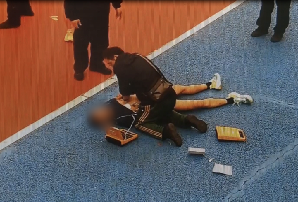 3月23日周六上午,张睿把女儿送到广州天河体育中心上体能课以后,自己正准备在附近跑个步时,忽然看见前方跑道上有一位跑者倒在地上,四周已经围上了人。