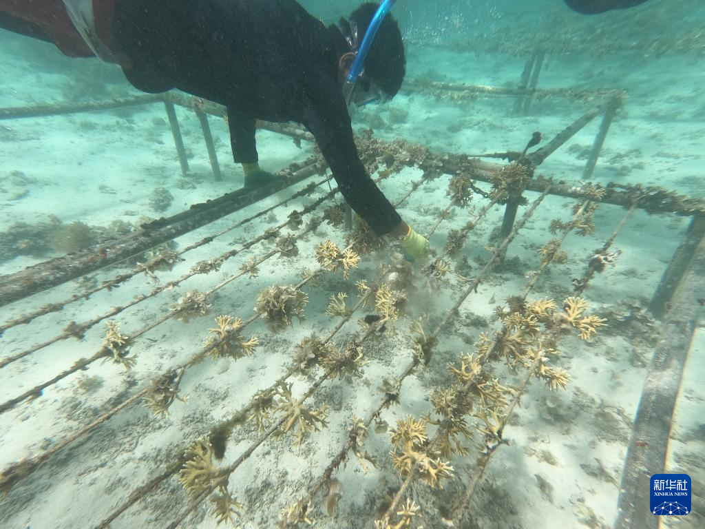 据运营这块珊瑚苗圃的毛里求斯环保组织“节能社会”主席纳迪姆·纳祖拉利介绍,中国技术的加持让珊瑚培育“提速”,中国和毛里求斯合力实施的珊瑚挽救计划正在让当地珊瑚礁群重新焕发生机。