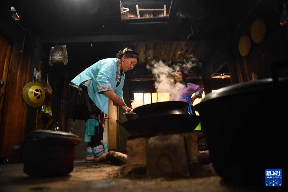 在融水苗族自治县杆洞乡尧告村,村民在家里做饭(8月13日摄)。