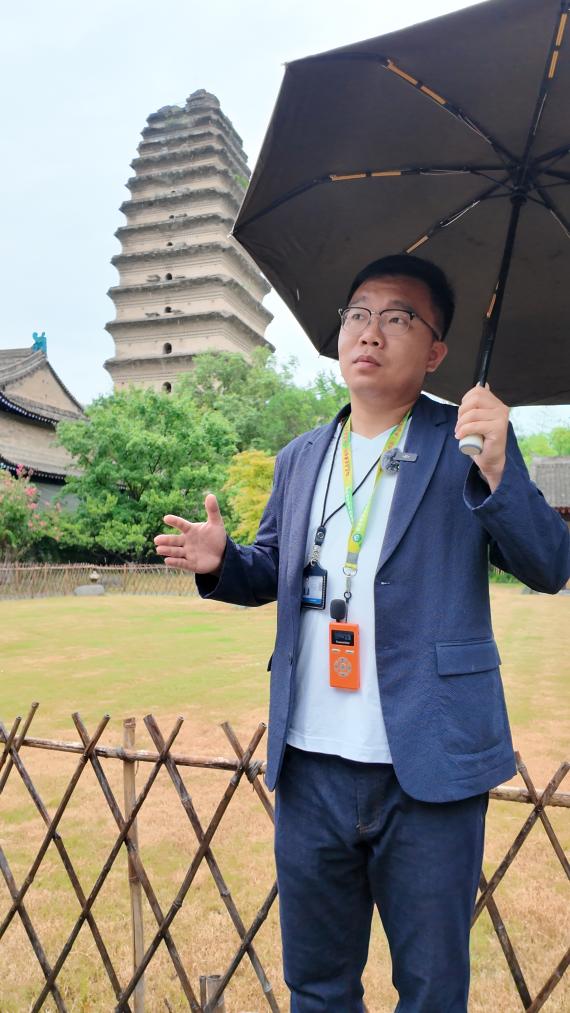 除了线上讲解,刘国杨依然坚持一线带团,在陕西历史博物馆、大雁塔和小雁塔都能经常见到他的身影。刘国杨说,只有和游客离得足够近,才能发现问题、提升讲解水平。此外,他还组建了一支20多人的线下导游团队。“我们会加大导游培训力度,靠我们的专业性,赢得大家对导游职业的更多认同和尊重。”他说。