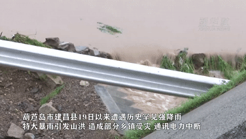 辽宁省葫芦岛市建昌县19日以来遭遇历史罕见强降雨,特大暴雨引发山洪,造成部分乡镇通讯、电力中断。
