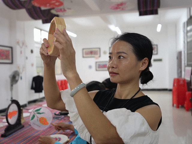 “我从小就跟着奶奶学刺绣,后来又跟着姑姑、阿姨学,在学习中不断创新,已经以七里刺绣为基础创作了12种工艺品。我要让七里刺绣走出大山,让越来越多的人接受;让七里刺绣走进学校,走近孩子,让阿奶的手艺代代相传。”广西百色市田东县义圩镇朔晚村村民凌漫丽说。