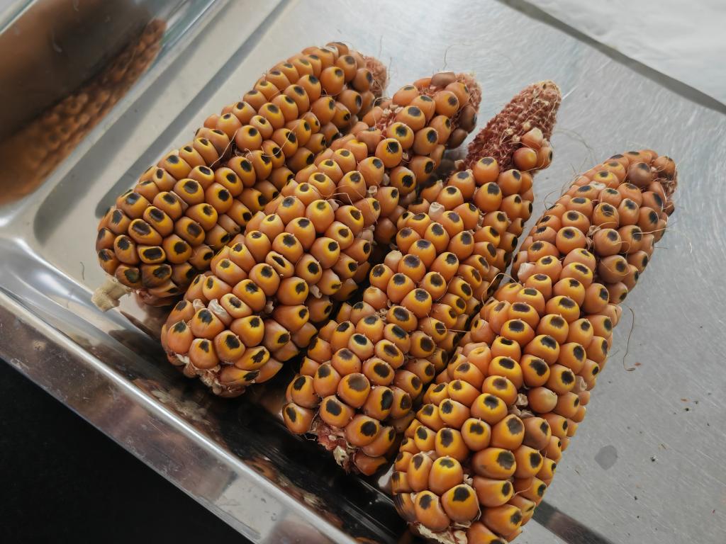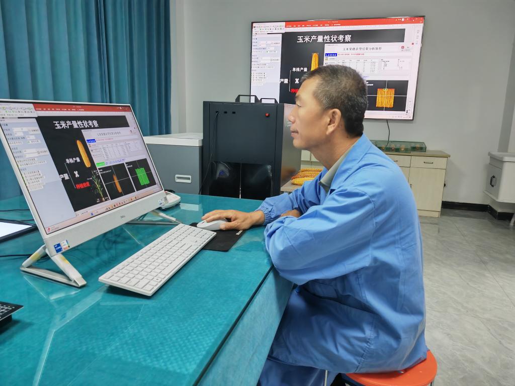8月16日,在敦煌种业研究院,研究人员正在做玉米产量性状考察。新华社记者 王朋 摄